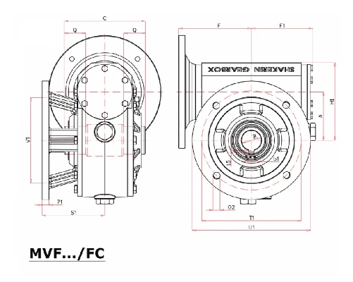 گیربکس شاکرین حلزونی MVF.FC سایز 250 فلنج دار